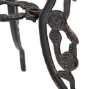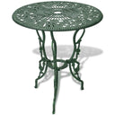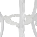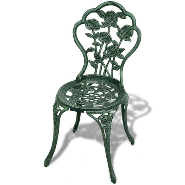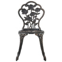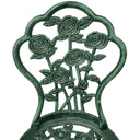 De buitentafel en -stoelen zijn gemaakt van robuust gietaluminium, wat weerbestendig en zeer duurzaam is. De gietijzeren poten dragen bij aan de stevigheid van de set. Het gedetailleerde bloemenpatroon zorgt voor romantiek in de tuin.