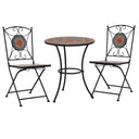 Geef een romantisch tintje aan je tuin, terras of balkon met deze mozaïek bistroset. Aan deze decoratieve, maar functionele tuinset kan je gezellig kletsen met vrienden en een drankje drinken.