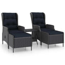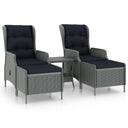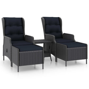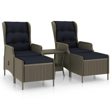 De theetafel en verstelbare tuinstoelen, met een gepoedercoat stalen frame bedekt met rond PE-rattan, zijn stevig en gemakkelijk schoon te maken. De dik gevoerde kussens bieden extra comfort tijdens het loungen. De kussenhoes heeft een rits waardoor hij gemakkelijk afneembaar en wasbaar is. Dankzij het gasveermechanisme is de rugleuning naar wens verstelbaar. Door de knop aan de zijkant kan je comfortabel op de stoel liggen. De stoel is perfect om op te ontspannen en je voeten kan je laten rusten op het bijpassende voetenbankje. Je kan de stoel op elke gewenste plek plaatsen. Het massieve tafelblad is ideaal voor het plaatsen van verschillende spullen. De loungeset is lichtgewicht waardoor hij eenvoudig te verplaatsen is.