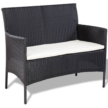 Deze poly rattan loungeset, bestaande uit 1 tweezitsbank, 2 armstoelen, 1 salontafel en 3 zitkussens, biedt een stijlvolle zithoek voor je tuin of terras.
