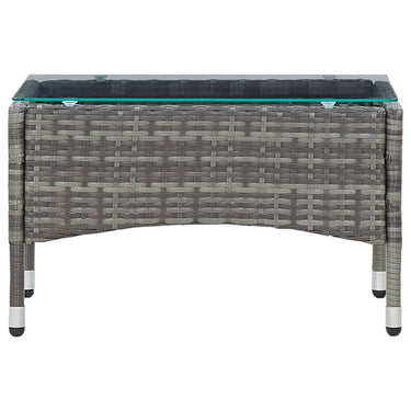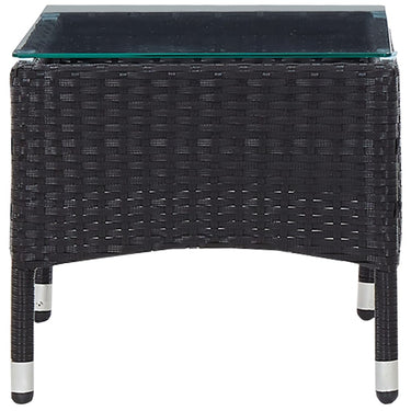 - Materiaal: PE (polyethyleen) rattan, gepoedercoat stalen frame en glazen tafelblad