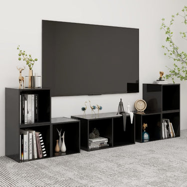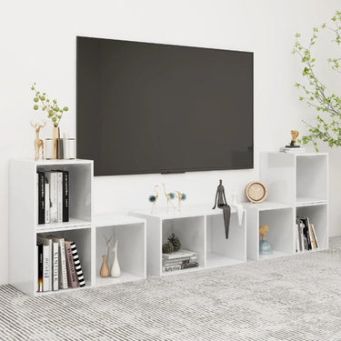 Deze televisiemeubelset biedt voldoende ruimte om tijdschriften, boeken, dvd's en multimedia-apparaten overzichtelijk en binnen handbereik op te bergen. Elk meubel kan horizontaal of verticaal worden geplaatst, waardoor het een perfecte aanvulling op je interieur is. Deze hifi-kastenset is eenvoudig schoon te maken met een vochtige doek.