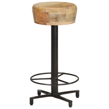 Massief mangohout is een tropisch hardhout. Het heeft de kracht om veel gewicht te dragen en is goed bestand tegen slijtage. Bovendien maken het voortreffelijke vakmanschap en de prachtige houtnerven elke kruk net iets anders dan de rest. De gepoedercoat ijzeren basis draagt bij aan de stabiliteit. De zitkrukken hebben ingebouwde voetensteunen voor extra zitcomfort.