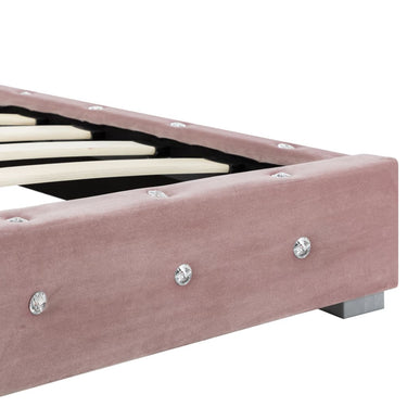Dit bedframe onderscheidt zich door een ingetogen en toch elegant ontwerp, en voegt een vleugje elegante charme toe aan je slaapkamer. Het is gemaakt van gepoedercoat ijzer, multiplex en MDF, en is buitengewoon stevig en duurzaam. De gepoedercoat stalen poten maken het bed extra duurzaam. Het bed is bekleed met duurzaam fluweel waardoor het een uitnodigende uitstraling heeft en gemakkelijk schoon te maken is. Het meegeleverde matras heeft een dikte van ca. 17 cm, is zacht en comfortabel en heeft een gewatteerde, wasbare hoes. Het verdeelt automatisch je gewicht en vermindert stress op de drukpunten van je lichaam. Het matras wordt sterk aanbevolen voor het verzachten van gewrichtspijn, slapeloosheid, rugpijn en nekpijn. De bovenlaag van het matras absorbeert vocht en zorgt voor een goede warmte-isolatie. Bovendien is het matras gemakkelijk schoon te maken dankzij de wasbare hoes, zodat het altijd hygiënisch blijft. Het matras bestaat uit 3 lagen, van boven naar beneden: 1 cm wasbare, gevoerde hoes, 15 cm 30 D schuim, 1 cm wasbare, gevoerde hoes.