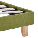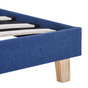 Dit bedframe wordt gekenmerkt door een ingetogen en toch elegant design en voegt een vleugje prachtige charme toe aan je slaapkamer. Het frame is gemaakt van hout en ijzer en is zeer stevig en duurzaam. De houten poten maken het bed extra duurzaam. Bovendien heeft het bed, gestoffeerd met duurzame stof, een uitnodigende uitstraling en is het gemakkelijk schoon te maken. Dit bedframe is geschikt voor een matras van 140 x 200 cm.