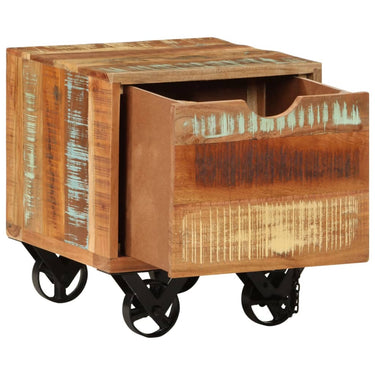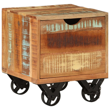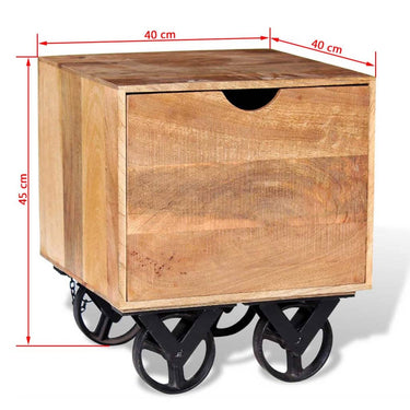 Deze houten bijzettafel in industriële stijl is een tijdloze aanvulling op je huis. Hij heeft een handige lade en is uitgerust met 4 wieltjes voor eenvoudige mobiliteit.