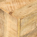 De bijzettafel kan ook worden gebruikt als een banktafel, woonkamerkast, wandkast of nachtkastje. Hij is gemaakt van mangohout, dat stevig, stabiel, duurzaam en mooi is, en het vakmanschap draagt bij aan de spectaculaire retrostijl.