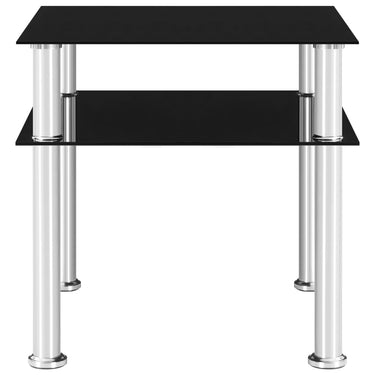 Dit tafeltje heeft een gehard glazen blad en wordt ondersteund door roestvrijstalen poten, waardoor het buitengewoon stevig en stabiel is. De glazen tafel is gemakkelijk schoon te maken met een vochtige doek. Het onderschap biedt je extra opbergruimte.