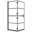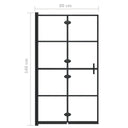 - Materiaal: ESG (enkellaags veiligheidsglas) met zwarte rasterprint en aluminium