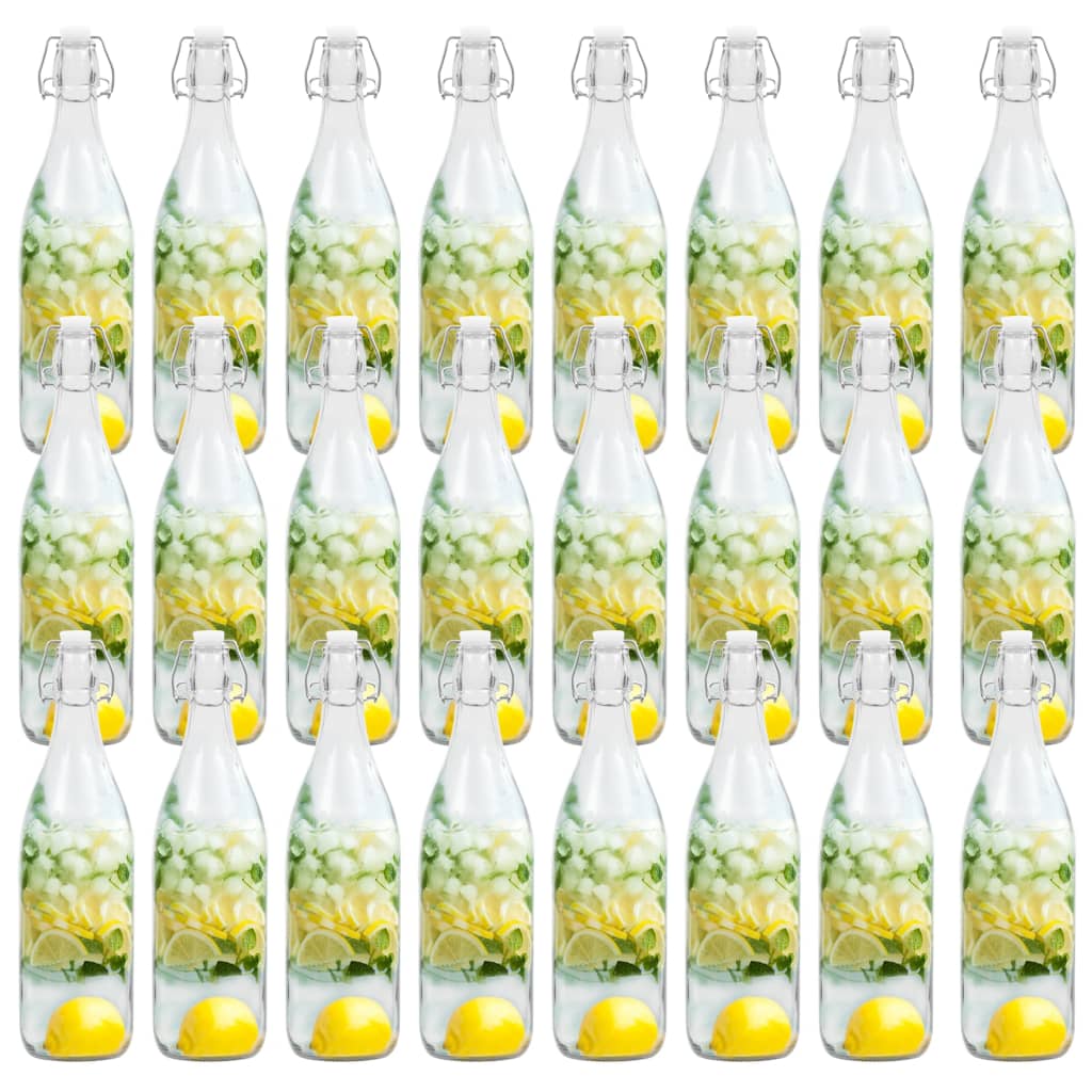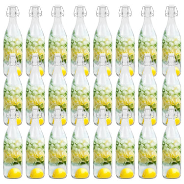 Onze glazen flessen met beugelsluiting hebben een inhoud van 1 liter en bieden een ideale oplossing voor het bewaren van eigengemaakt sap, melk, likeur, olie, azijn of saus.