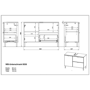 Het badkamermeubel GW-Mauresa heeft rechts een klep en lade en links een deur. Alle scharnieren van het meubel zijn gedempt, waardoor de lades praktisch geopend en gesloten kunnen worden. Bovendien verbergt de sifonuitsparing de sifon op slimme wijze in het meubel. Deze onderkast past onder elke wastafel. Deze wastafelkast is afgewerkt met een melaminehars coating waardoor het vochtafstotend is. Verder maken de duurzame ABS-randen de gootsteenkasten bijzonder schok- en slagvast. Wasspullen en handdoeken kan je opbergen op het verstelbare schap.