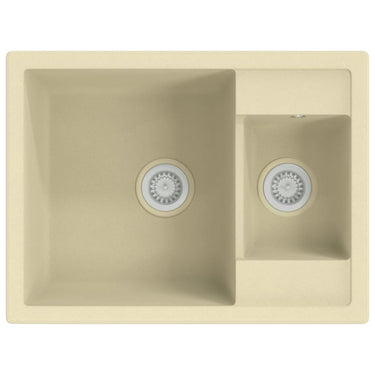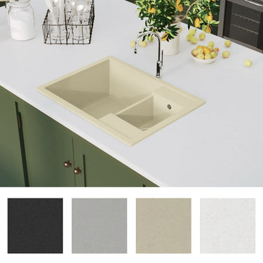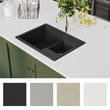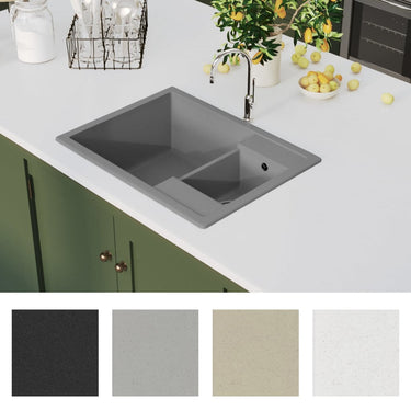 De wastafel is gemaakt van graniet waardoor hij hittebestendig, kras- en slagvast en gemakkelijk schoon te maken is. Een zeefje is ook inbegrepen voor eenvoudige verwijdering van vuil. Het afvoergat heeft een diameter van 90 mm.