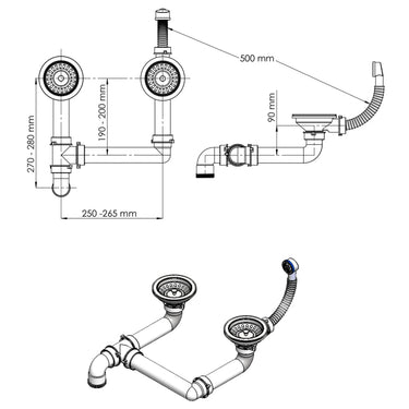 - Afmetingen kleine bak: 162 x 305 x 100 mm (B x D x H)