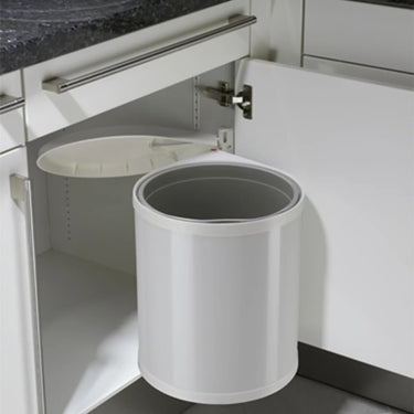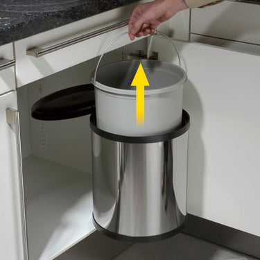 Deze afvalbak kan maximaal 15 liter bevatten en kan worden gebruikt in kasten met een breedte van ten minste 40 cm. Het dekselopeningsmechanisme opent het deksel automatisch naar één kant wanneer de kastdeur wordt geopend. Er is enige montage vereist en de keukenkast kan op zowel rechts als links openende deuren worden geïnstalleerd.