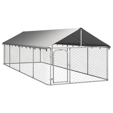 Deze grote hondenkennel biedt voldoende ruimte om te bewegen, terwijl het gaas rondom ongelukken helpt voorkomen en voor voldoende ventilatie zorgt. Dankzij de stevige en robuuste gegalvaniseerd stalen constructie is deze hoogwaardige hondenkennel zeer duurzaam. Het inbegrepen dak is gemaakt van 100% polyetheen en is vuurbestendig en uv-beschermend. Het biedt bescherming tegen zon, regen, sneeuw en andere weersomstandigheden. De scharnierdeur met afsluitbaar vergrendelingssysteem biedt je honden extra veiligheid.