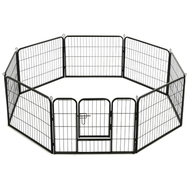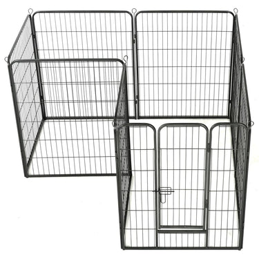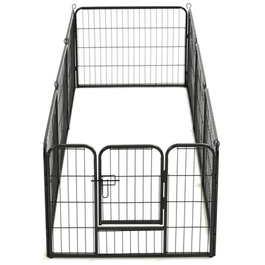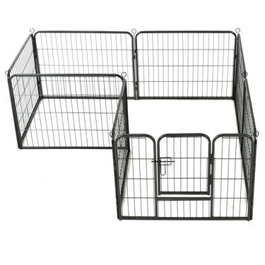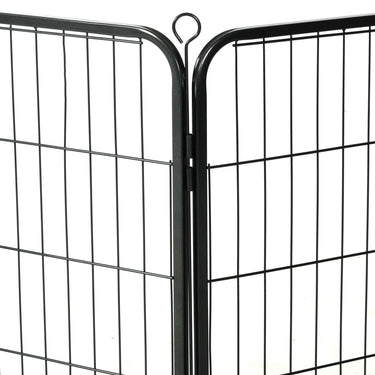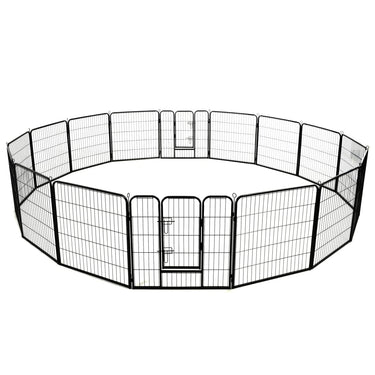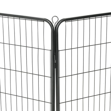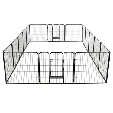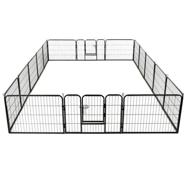 Deze hondenkennel kan eenvoudig opgezet en afgebroken worden. Hij bestaat uit 16 stevige panelen en elk paneel kan eenvoudig aan de volgende worden bevestigd, waardoor je de ren in verschillende vormen op kunt zetten. De omheining is voorzien van 2 scharnierdeuren met schuiven voor eenvoudige toegang. Deze duurzame en weerbestendige hondenren is gemaakt van gepoedercoat staal, waardoor hij geschikt is voor gebruik binnens- en buitenshuis. De inbegrepen grondpinnen helpen om de ren buiten vast te zetten voor extra stabiliteit en veiligheid.
