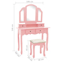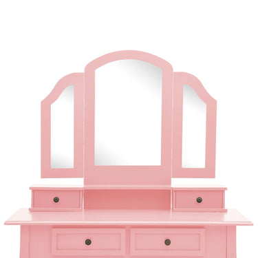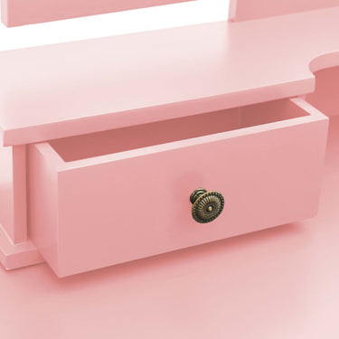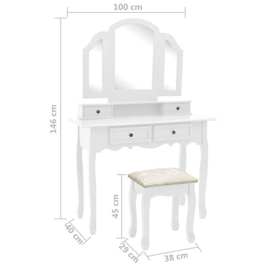 Deze opmaaktafel heeft een 3-in-1 tafelspiegel, waarvan 2 zijspiegels inklapbaar zijn middels duurzame scharnieren. Je kunt ze naar de gewenste hoek draaien. De spiegel en de tafel kunnen afzonderlijk worden gebruikt. De 4 chique lades bieden extra ruimte aan sieraden, cosmetica en andere spulletjes. Deze kaptafel en kruk zijn een echte blikvanger, waar ze ook staan.