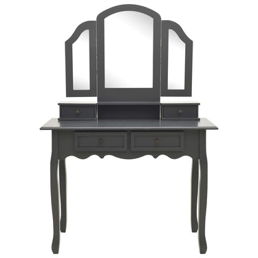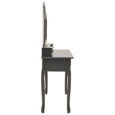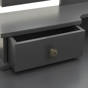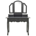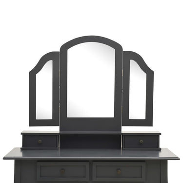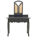 Onze charmante kaptafel met krukje is gemaakt van hoogwaardig paulowniahout. De Victoriaanse stijl en mooie zwarte afwerking geven een vleugje elegantie en schoonheid aan je slaapkamer, opmaakkamer of inloopkast. Het uitstekende vakmanschap maakt de kaptafelset nog opvallender.