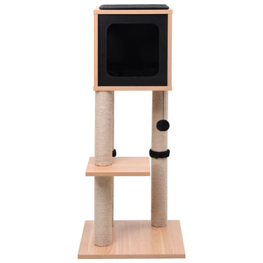 Je kattenvriendjes kunnen hun klauwen scherper maken met de jute krabpalen. Dit zorgt voor een gezonde uitlaatklep voor de krablust van je katten. Ze vinden het ook heerlijk om achter elkaar aan te rennen terwijl ze van en op dit leuke speelmeubel springen. Wanneer ze genoeg gespeeld hebben kunnen je kleine vriendjes uitrusten op de bovenste platformen, waar ze een beter uitzicht hebben. De sisal mat bovenop de bovenplank kan verwijderd worden. Ons kattenmeubel is ontworpen met een knus huisje waarin je kat kan luieren. Het kussen van deze kattentoren is verwijderbaar en wasbaar. De basis van deze kattenkrabpaal is stevig en stabiel.