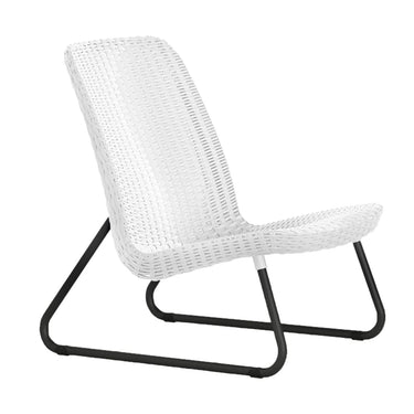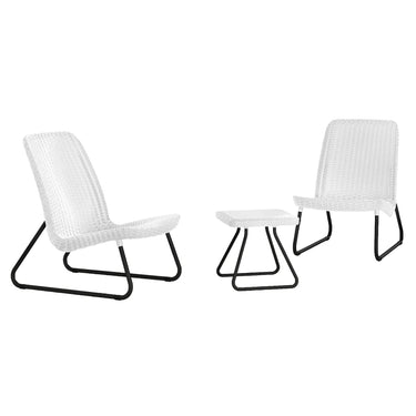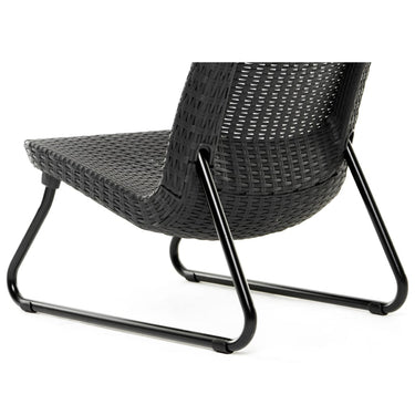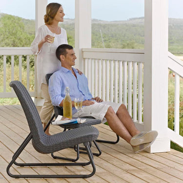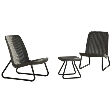 Het lage profiel, de stijlvolle curves en de rattan uitstraling van de stoelen en de tafel is de Rio tuinmeubelset 218157 van Keter het toonbeeld van moderne elegantie.