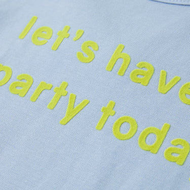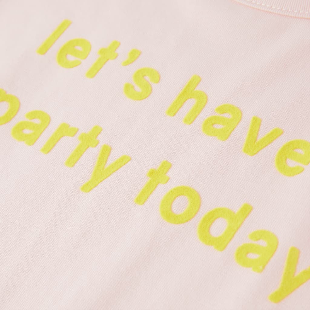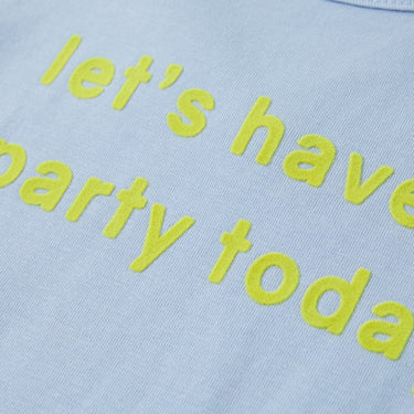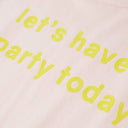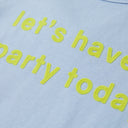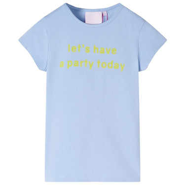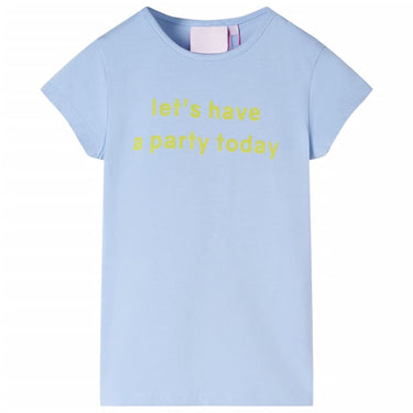 Dit kindershirt heeft korte mouwen, een ronde halslijn en een recht model. Op dit kindershirt staat de tekst 'let's have a party today' afgebeeld. Het kindershirt met korte mouwen is gemaakt van 95% katoen en 5% elastaan, waardoor hij comfortabel en ademend is.