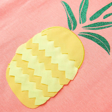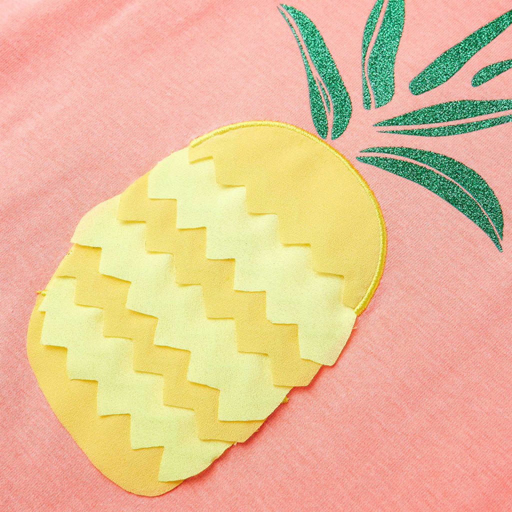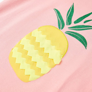 Het mouwloze kindershirt heeft een ronde halslijn en een recht model. Op dit kindershirt staat op de voorkant een ananas afgebeeld. Het kindershirt is gemaakt van katoen en elastaan, waardoor het zacht en comfortabel aanvoelt.