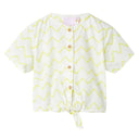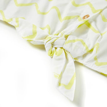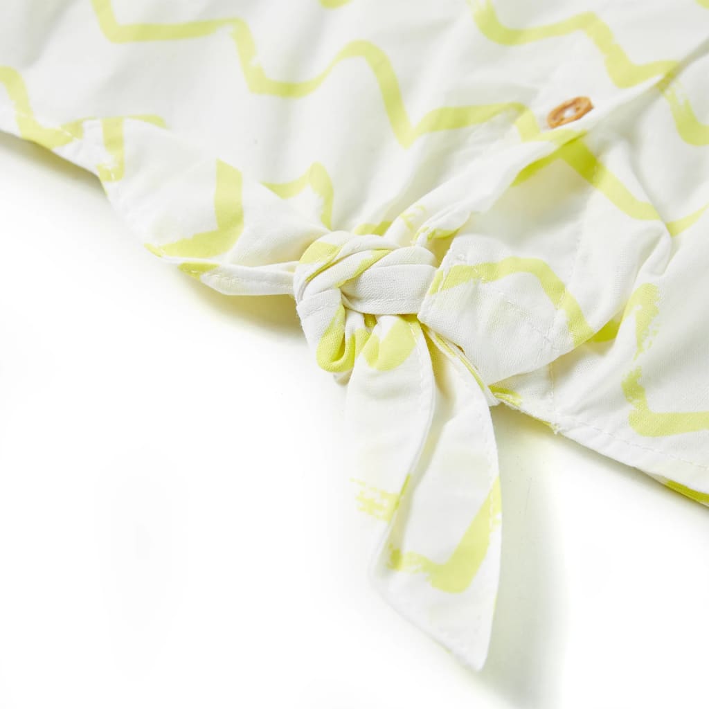Dit kindershirt heeft korte mouwen, een ronde halslijn en een recht model. Dit kindershirt heeft een streepjespatroon en een knoop in de zoom. De buitenkant van het kindershirt met korte mouwen is gemaakt van 100% katoen, waardoor het zacht en comfortabel aanvoelt.