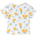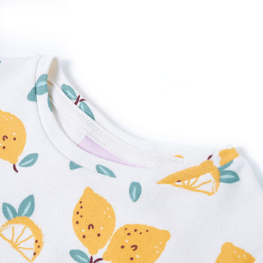 Dit kindershirt heeft korte mouwen, een ronde halslijn en een recht model. Op dit kindershirt staat op de voorkant een leuk patroon van citroenen en hij heeft een knoop in de zoom. Het T-shirt is gemaakt van 100% katoen, waardoor het zacht en comfortabel aanvoelt.
