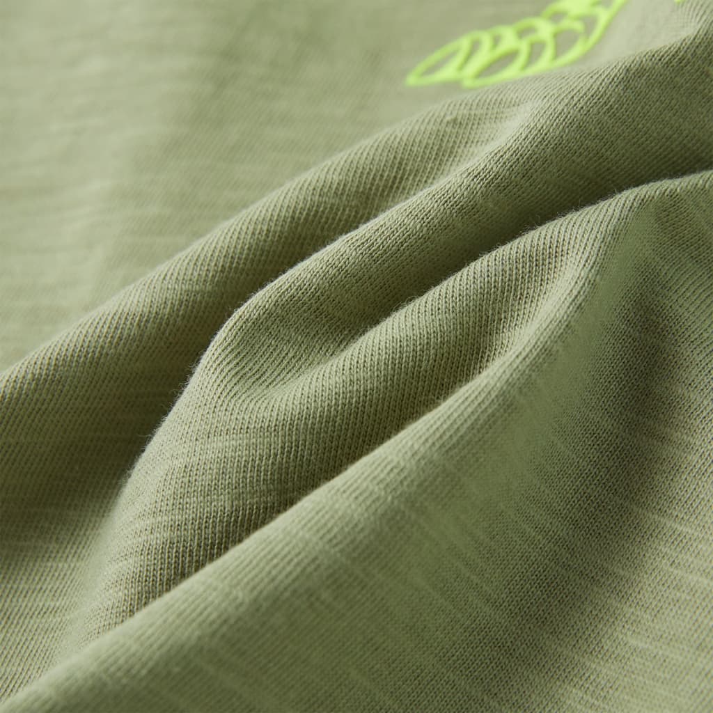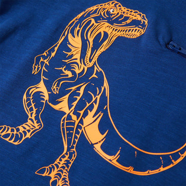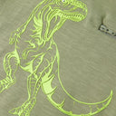Dit kindershirt heeft korte mouwen, een geribbelde ronde halslijn en een recht model. Dit kindershirt heeft een afbeelding van een dinosaurus en een rits. Het kindershirt met korte mouwen is gemaakt van 100% katoen, waardoor het comfortabel en ademend is.