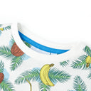 Dit kindershirt heeft korte mouwen, een ronde halslijn en een recht model. Op dit kindershirt staan kokosnoten, bananen en bladeren afgebeeld. Het T-shirt is gemaakt van 100% katoen, waardoor het zacht en comfortabel aanvoelt.