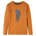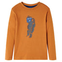 Dit kindershirt heeft lange mouwen, een ronde halslijn en een recht model. Op dit donkerokere T-shirt staat een grote gorilla met een muziekspeler afgebeeld. Het kindershirt met lange mouwen is gemaakt van 100% katoen en voelt zacht en comfortabel aan.