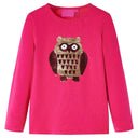 Dit kindershirt heeft lange mouwen, een ronde halslijn en een recht model. Op dit felroze kindershirt staat een grote, speciale uil afgebeeld. Het kindershirt met lange mouwen is gemaakt van zacht materiaal met 95% katoen en 5% elastaan voor extra comfort en ademend vermogen.