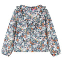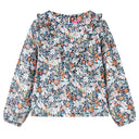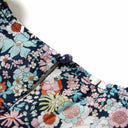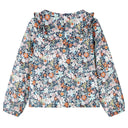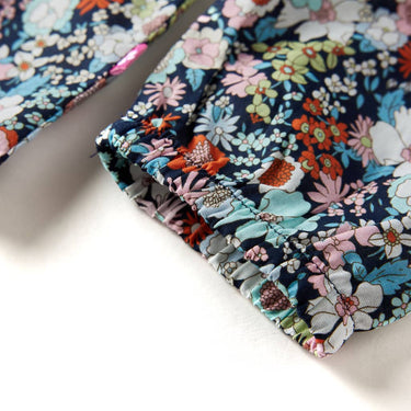 Dit kindershirt heeft lange mouwen, een ronde halslijn en een sleutelgat opening met een knoop achterin de nek. Op dit donkerblauwe kindershirt staan allemaal bloemetjes afgebeeld. Het kindershirt is van zacht materiaal van 100% katoen gemaakt en is warm en comfortabel.