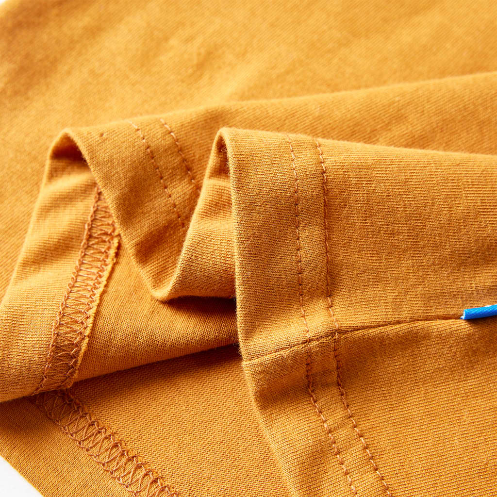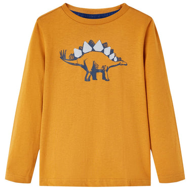 Dit t-shirt heeft lange mouwen, een ronde halslijn en een recht model. Op dit donkerrode T-shirt staat een dinosaurus afgebeeld. Het kindershirt met lange mouwen is gemaakt van 100% katoen dat met een silicone- en enzymwassing is behandeld, zodat hij zacht en comfortabel aanvoelt.