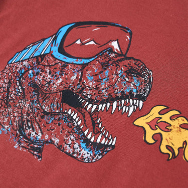 Dit kindershirt heeft lange mouwen, een ronde halslijn en een recht model. Op dit roodbruine kindershirt staat een grote dinosaurus afgebeeld. Het kindershirt met lange mouwen is gemaakt van 100% katoen en voelt zacht en comfortabel aan.