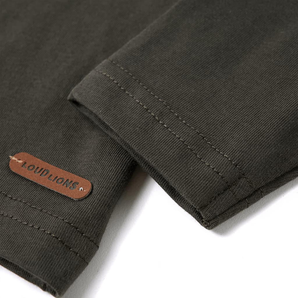 Dit kindershirt heeft lange mouwen, een ronde halslijn en een recht model. Op dit kakikleurige kindershirt staan een man op een motor afgebeeld. Het kindershirt met lange mouwen is gemaakt van 100% katoen dat met een silicone- en enzymwassing is behandeld, zodat hij zacht en comfortabel aanvoelt.