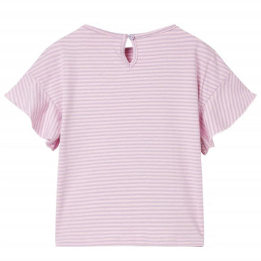 Dit kindershirt heeft korte mouwen, een ronde halslijn en een recht model. Dit kindershirt heeft een ontwerp met ruches aan de mouwen. Het kindershirt met korte mouwen is gemaakt van 95% katoen en 5% elastaan, waardoor het zacht en comfortabel aanvoelt.