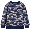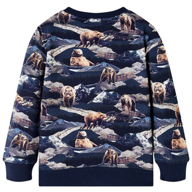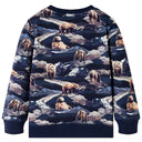 Deze trui voor kinderen heeft lange mouwen, een ronde hals en geribbelde randen aan de manchetten, halslijn en onderkant. Op de kindertrui staan beren en ijsbergen afgebeeld. De kindertrui is gemaakt van 95% katoen en 5% elastaan, waardoor hij comfortabel is en een ademend vermogen heeft.