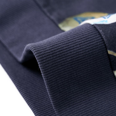 Deze trui voor kinderen heeft lange mouwen, een ronde hals en geribbelde randen aan de manchetten, halslijn en onderkant. Op deze trui staan voetballen afgebeeld. De kindertrui is gemaakt van 95% katoen en 5% elastaan dat met een siliconen- en enzymwasbeurt is behandeld, zodat hij zacht en comfortabel aanvoelt.