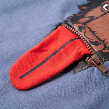 Deze kindertrui met capuchon heeft lange mouwen en geribbelde machetten en zoom. Op deze kindertrui staat een os afgebeeld met een rits als mond. Open de rits om de tong te zien. De kindertrui met capuchon is gemaakt van 95% katoen en 5% elastaan, waardoor hij zacht en comfortabel aanvoelt. De zachte fleecevoering zorgt voor extra warmte.