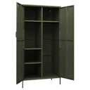 Deze kast is gemaakt van staal, waardoor hij zowel duurzaam als makkelijk schoon te maken is. Hij is voorzien van 4 verstelbare schappen en 1 groot vak met hangstang, die je voldoende opbergruimte bieden voor zowel je langere outfits als opgevouwen kleding en accessoires, zoals truien, jeans, hoeden en handtassen.