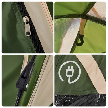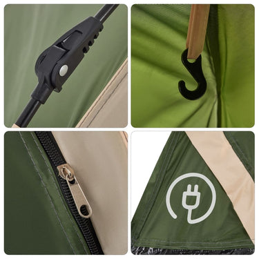 - Handige toegang tot het elektriciteitssnoer: met de E-port kun je gemakkelijk een verlengsnoer van een externe stroombron aansluiten op je tent.