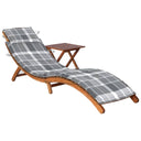 Het loungebed and tafeltje zijn gemaakt van massief acaciahout waardoor ze stevig en stabiel zijn. De lounger heeft een ergonomisch gebogen vorm zodat je heerlijk kunt liggen en volledig kunt ontspannen. Zowel het tuinbed als de tafel kunnen worden ingeklapt wanneer ze niet in gebruik zijn. Het kussen met hoofdkussen biedt extra comfort tijdens het loungen. Het heeft 6 sets touwtjes om het stevig aan het ligbed te bevestigen.