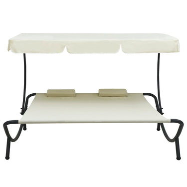 Dit dubbele ligbed wordt geleverd met 2 kussens en een luifel. Het is ideaal voor in je voortuin/achtertuin.
