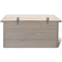 Het nestkastje heeft 3 openingen, waar 3 vogelpaartjes hun kuikens kunnen grootbrengen. Iedere ruimte heeft een uitneembare deur om het kastje eenvoudig te kunnen schoonmaken. Verder heeft de nestkast metalen hangers, waarmee hij in uw tuin kan worden opgehangen.