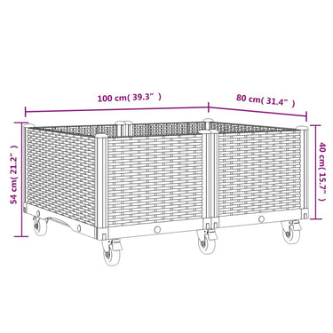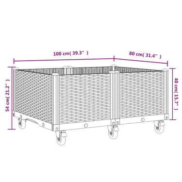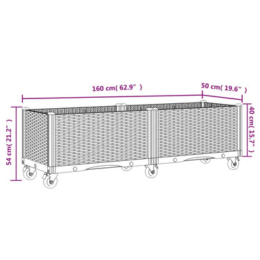 - Eenvoudig te verplaatsen: deze plantenbak heeft 4 wielen, waardoor hij eenvoudig te verplaatsen is. 2 van de wielen zijn voorzien van remmen om hem op zijn plaats te houden wanneer dat nodig is.