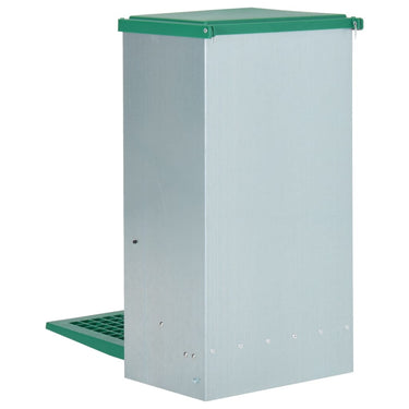 Deze feedomatic is gemaakt van een verzinkte plaat van 1 mm, wat dikker is dan elke andere voederbak waardoor hij zeer stabiel is. Het pedaal gemaakt van kunststof en een mesh raster, waardoor je geen last hebt van mest en water op het rooster. De klep dat toegang biedt tot het voer wordt geopend wanneer de dieren (pluimvee) op het pedaal stappen. Dankzij de grote inhoud bespaar je tijd omdat je de voerbak niet constant hoeft bij te vullen.
