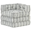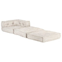 Deze veelzijdige slaapbank heeft een modulair ontwerp. Je kunt de modulaire secties in verschillende configuraties eenvoudig combineren en ze veranderen in een bank, bed, chaise longue, eenpersoonsstoelen of poefs - wat je maar wilt! Dankzij de katoenen, stoffen bekleding en de dikke voering is de bank gemakkelijk te onderhouden en extra zacht. De kussens vormen een decoratieve toevoeging en bieden extra comfort. Deze modulaire slaapbank is ook ideaal om op de veranda van het weer te genieten.