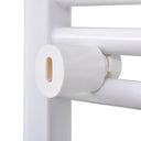 Dankzij het circulatiesysteem met heet water drogen je handdoeken erg snel, wat kosten bespaart op de energierekening. De radiator heeft 12 stalen buizen met een diameter van 22 mm en is wit geschilderd. De buizen zijn extra dik en leveren een hoge warmteafgifte. Aan de boven- en onderzijde zitten waterverbindingen voor een optimale watercirculatie.