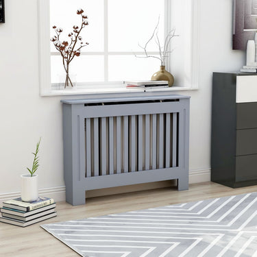 Deze radiatorkast is gemaakt van MDF waardoor hij stevig en duurzaam is. Hij heeft een modern gelat ontwerp, waardoor hij geschikt is voor elk interieur. Het schap biedt voldoende ruimte voor het plaatsen van boeken, fotolijsten, ornamenten, enz.
